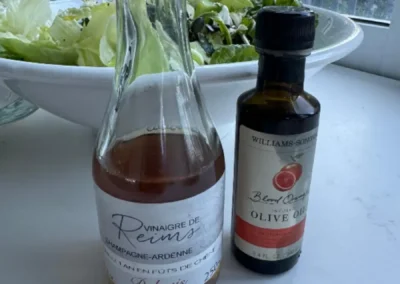 Season with the Reims vinegar, blood orange olive oil and salt.Â