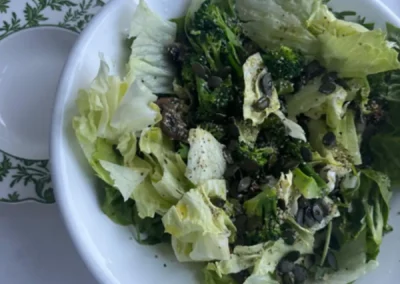 Some of you may know I advise against eating salad as a main meal, it is not great for your digestive fire. I love to add cooked vegetables into the salad, so it is better for your digestion. Add caulini or the broccoli florets.Â