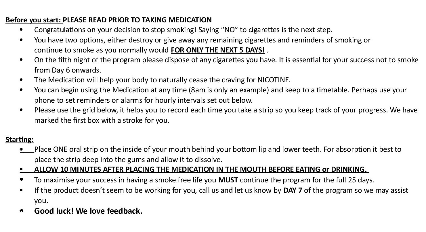 The oral strip method consists of a course of100 strips taken over a 25 day period.